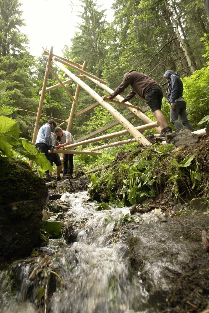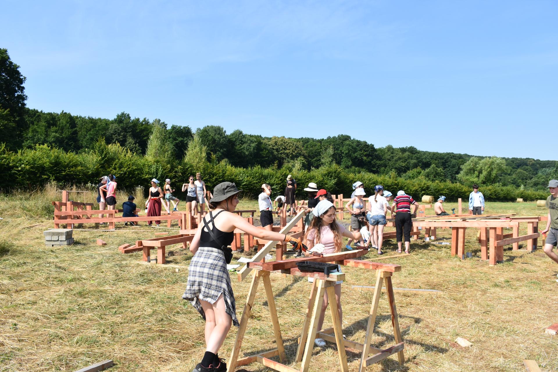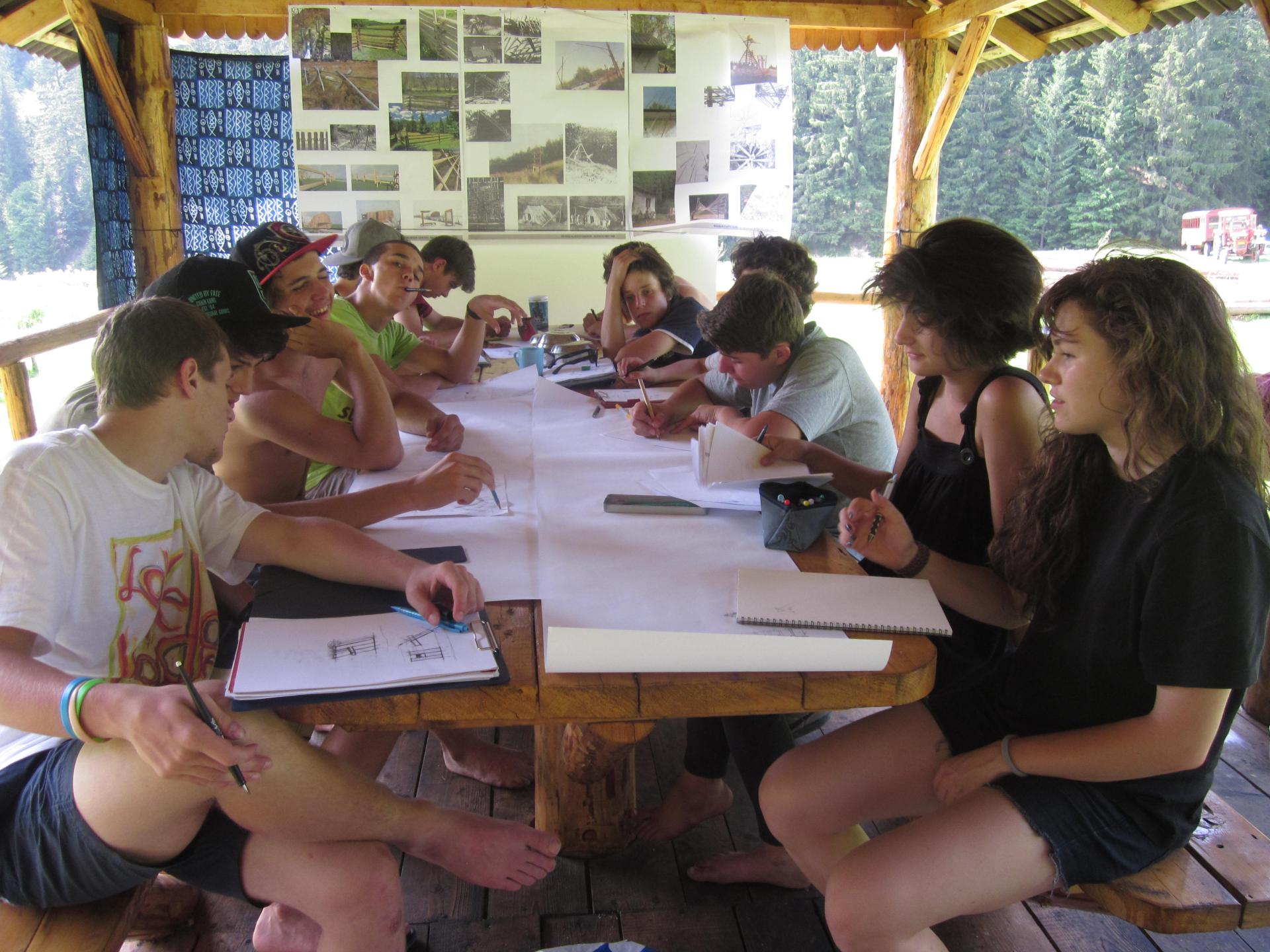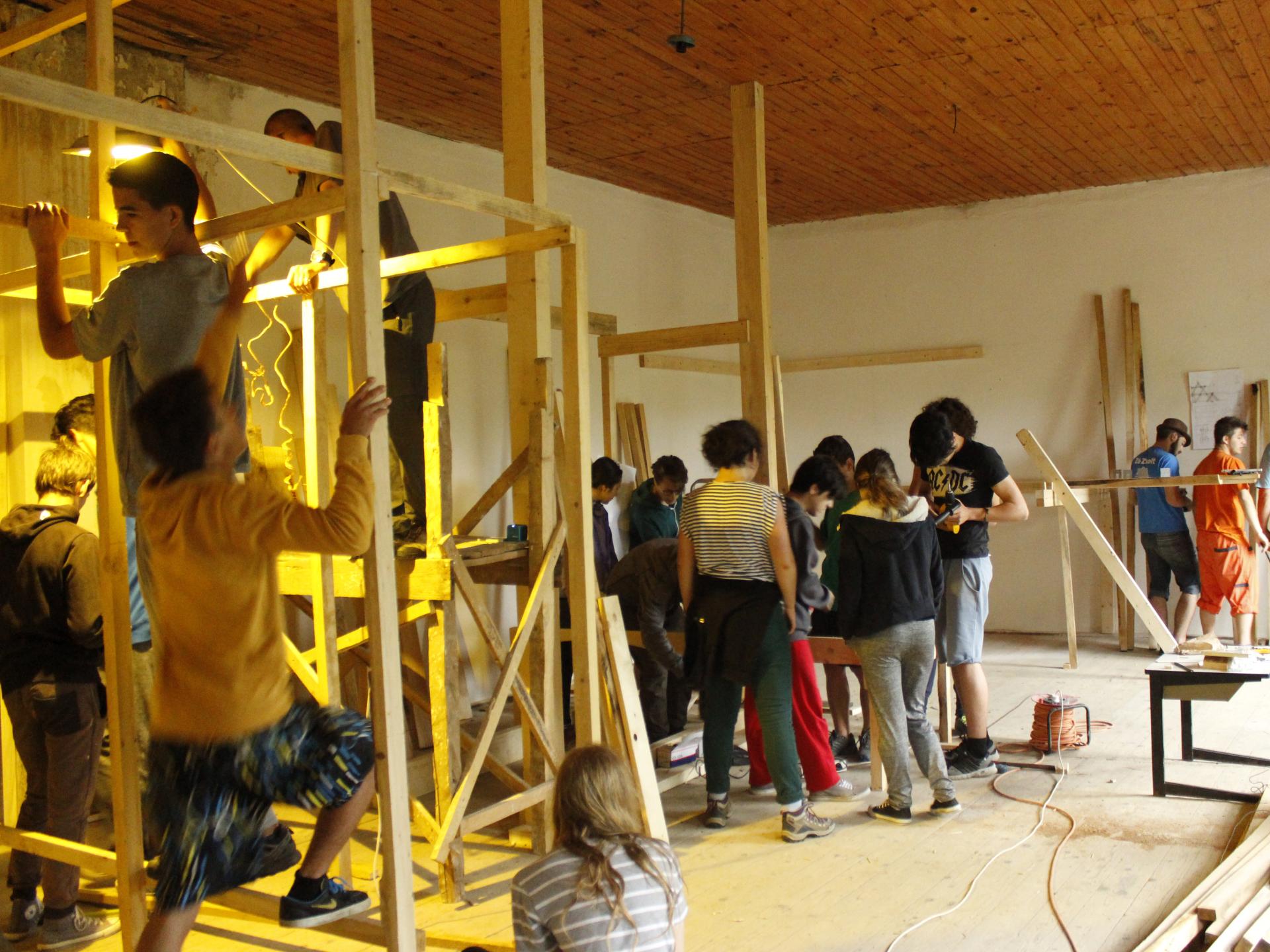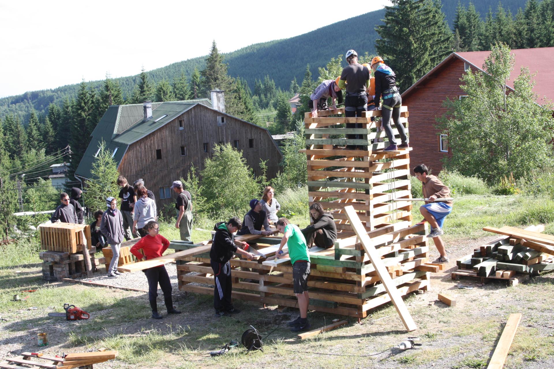 The annual architecture creative summer school has been organised for students of the architecture Nagy István High School of Arts for department since 2004. It is an extracurricular activity for learning architecture through experiential methods. It offers a way of learning, in which they are involved as active participants, through direct experiences in a setting without constraints. The schools have taken place in various rural areas in Eastern Transylvania and they involve collaborations with local municipalities or actors of civil society. During the summer-school participants are expected to collectively design and build smaller structures and furniture out of simple and/or recycled materials. These objects have to be functional and should respond to local necessities or improve the built environment.