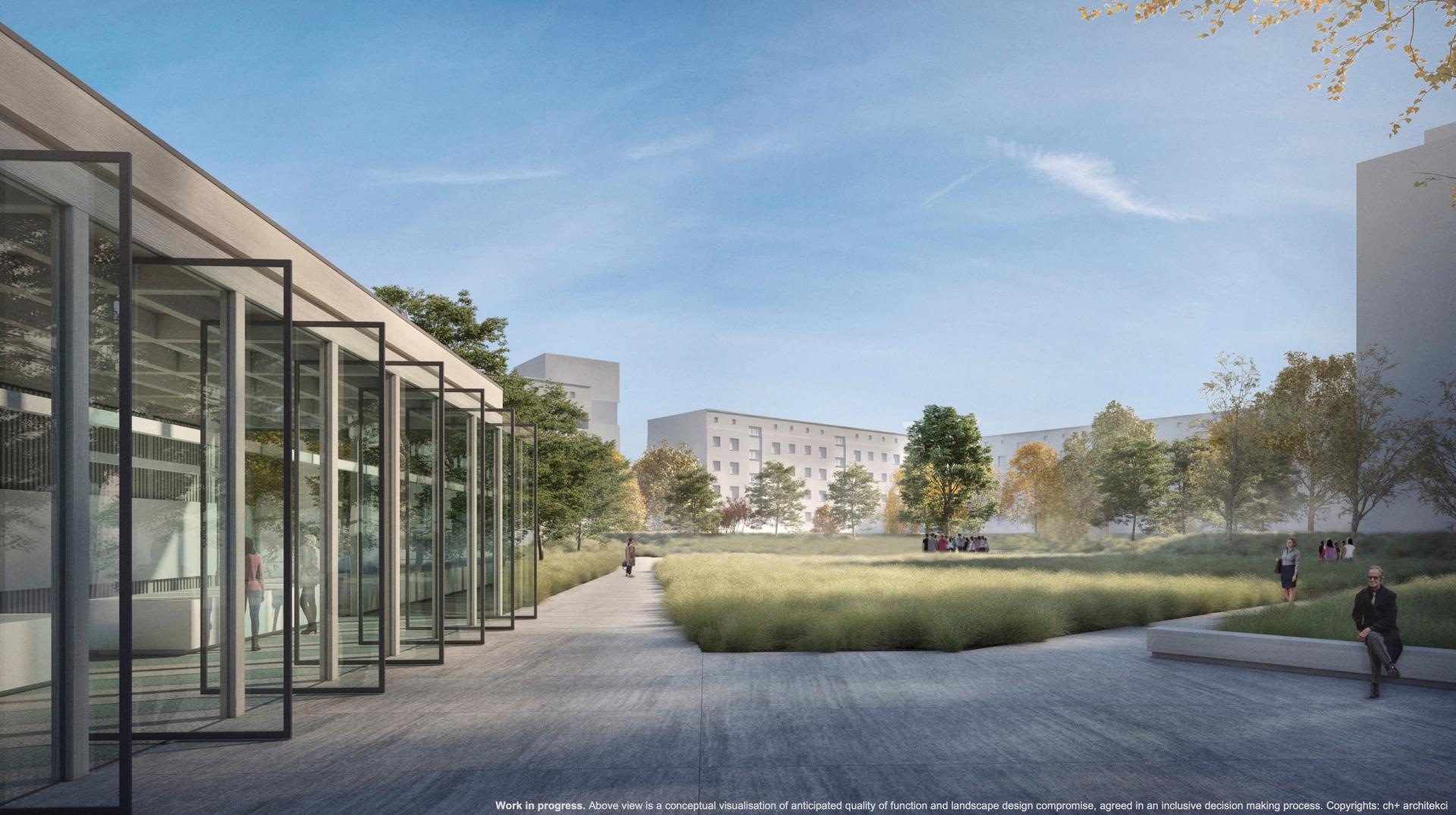 Visuals enclosed with this application are only illustrative boards showing work in progress, or rather thinking in progress, on several key aspects of the site design and requirements to be taken into consideration when setting up the contest. They are a conceptual visualization of anticipated quality of function and landscape design compromise, that is yet to be agreed on in an inclusive decision making process. The visuals are only a starting point for discussion in order to show the direction of aesthetics and also to demonstrate possible architectural solutions to issues that are blocking revitalization and commemoration initiatives so far. The final design and solutions will be subject to a multidisciplinary competition.