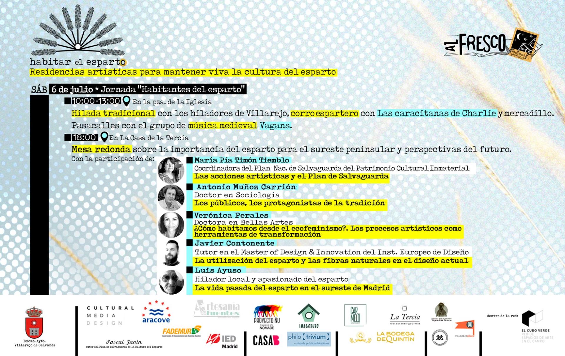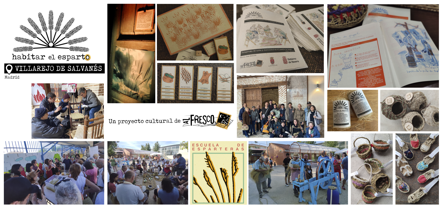 In 2018, the Al Fresco-Museos Efímeros collective promoted a series of philosophical dialogues on beauty for the creation of an ephemeral museum in Villarejo de Salvanés. In the conversations with the elderly, the work with esparto grass, associated with their childhood and youth experiences but almost completely lost today, was repeated as the imaginary of the locality. "Esparto died when plastic was born", they explained.