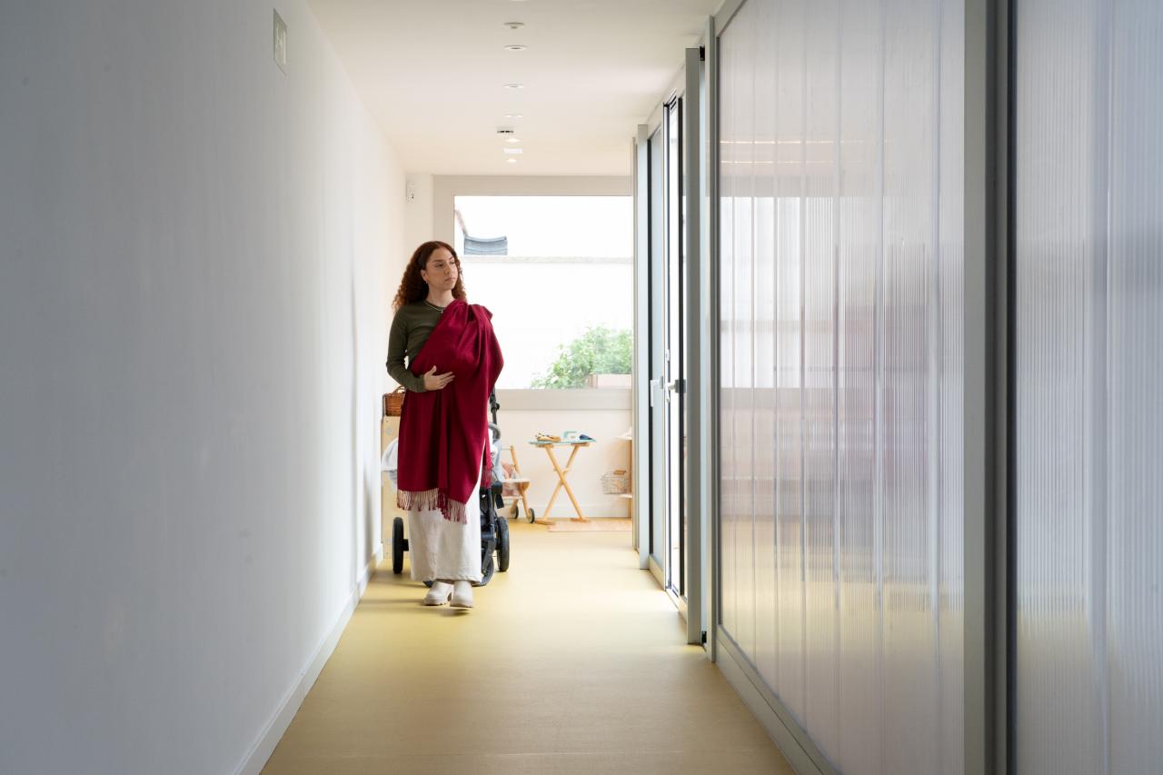 The architectural project deviates from traditional maternal residences by designing each floor as a self-contained living unit with five or six bedrooms, a living area, kitchenette (for minor mothers), and an assistance office. The three residential floors function as independent homes, offering privacy and a family-like atmosphere.
