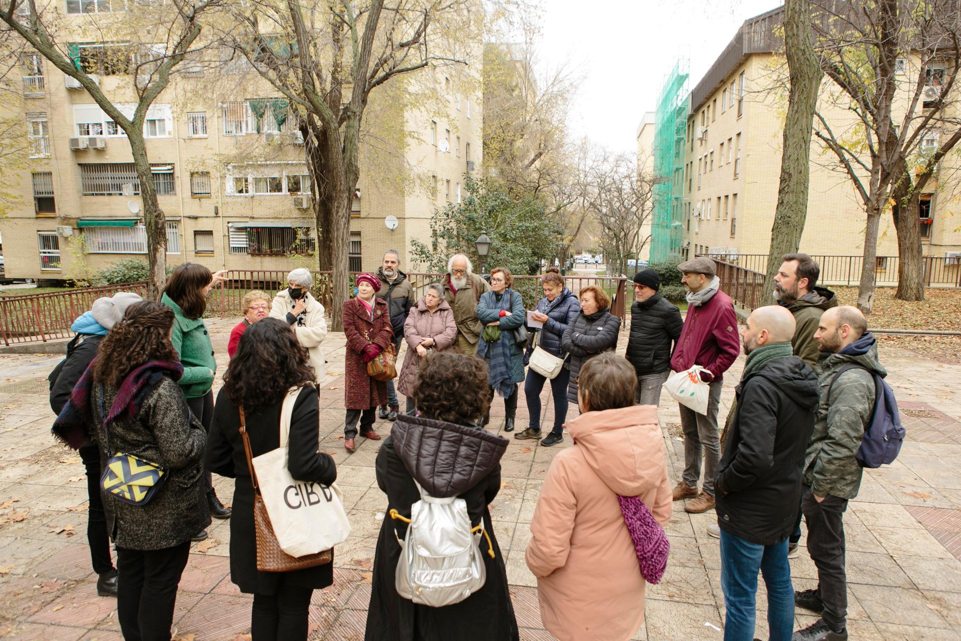 This cultural mediation project aims to delve into the study and reflection on the process of articulation of these neighbourhoods, whose protagonists were the neighbourhood movements of the last years of Franco's dictatorship and the subsequent Transition, undoubtedly one of the social movements that most influenced the transformation of the city. A collective research is proposed that takes the form of a workshop in which we work together with neighbours, in a creative process that takes, on the one hand, the use of walking as an aesthetic, poetic and political tool and, on the other, cultural mediation as a strategy for the generation of collective knowledge that allows us to elaborate new narratives about the territory that can be shared through the use of the urban route.