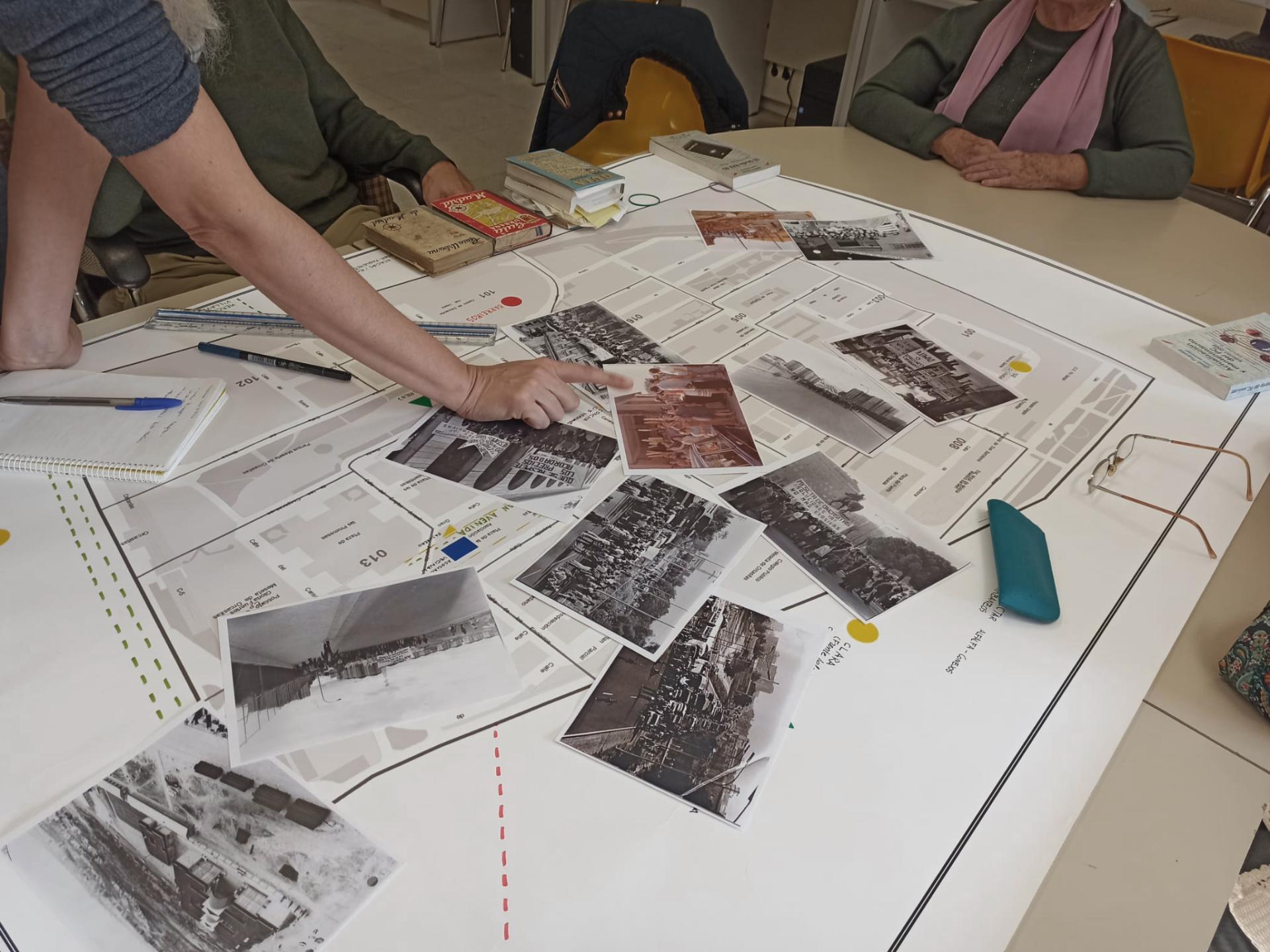 In some sessions, we played with the evocation of memory through the landscape, recalling what the neighbourhood was like when the participants arrived there, playing only with the images they remembered. In others, the image was brought from that which is already fixed and which belongs to very vindicated narratives, such as photographs of the mobilisations, of the neighbourhood leaders, of the banners and their messages, with the idea of activating other memories that are also personal but are connected in another way with the collective. We also use cartography, projecting the original layout of the neighbourhood onto the current one through memory. In short, it was an open process that sought to dive into different dimensions of the group's life experience in order to enhance it and build a new narrative of the neighbourhood based on it.