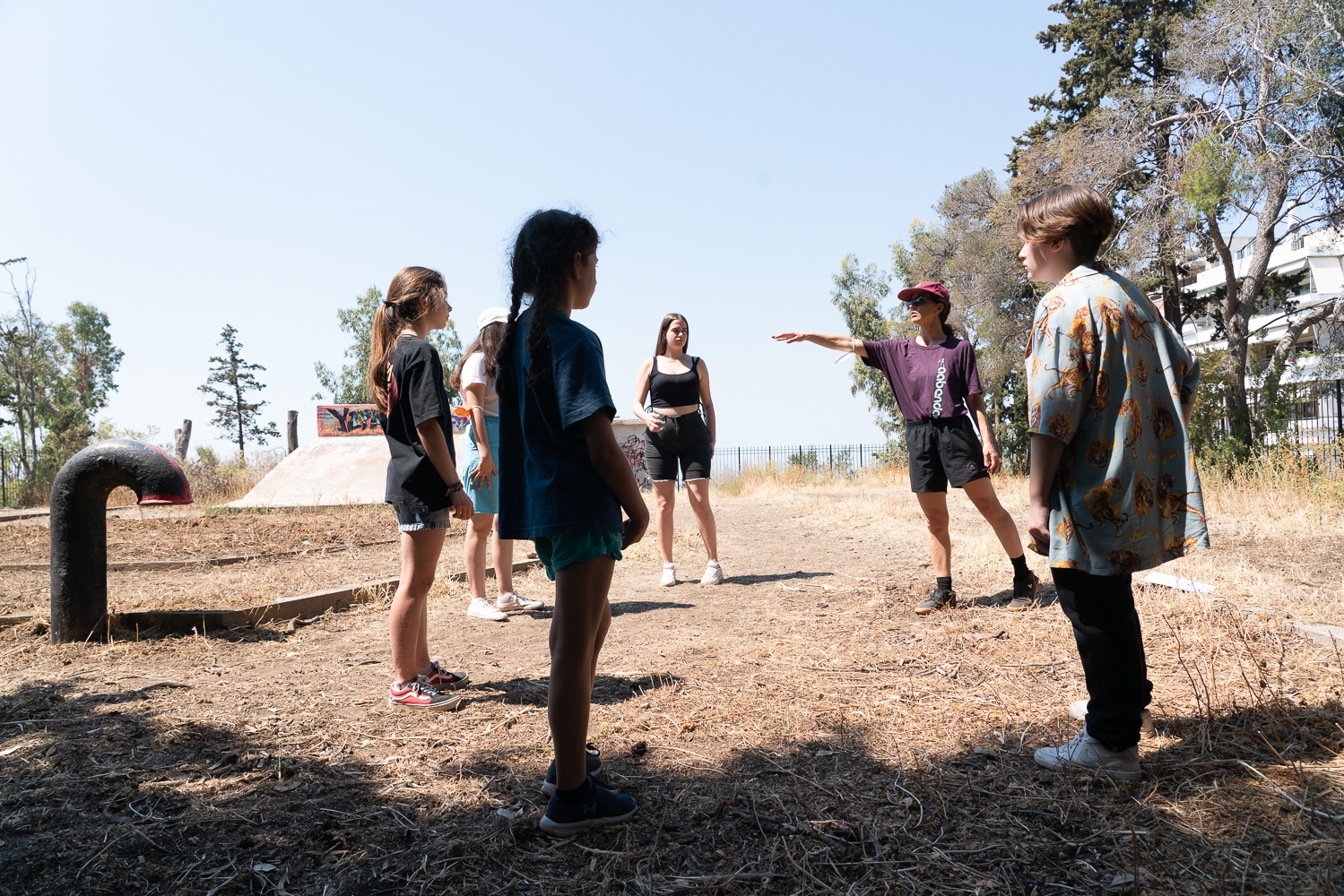 The year-long program (9/2021-9/2022) was framed by four interconnected pillars: dance, community, education, and space. These four pillars converged in the vision and implementation of a garden and were developed in parallel, revealing aspects of sustainability through practice. The project seeked to identify and document the typology of DDRC’s landscape, explore social and environmental practices, and regenerate the local ecosystem including the soil, the flora it hosts and the environment relevant to the Athenian context. The project articulated a supportive learning environment based on bottom-up mobilisation, in partnership with institutions and networks. It deployed experimental, participatory and interdisciplinary actions as a means towards community empowerment, and ecological awareness, through innovative learning, hands-on and theoretical interventions. The initiatives that MG launched served as a testing ground for cultivating ecological awareness, connecting with nature and embracing green transition, and climate change adaptation.