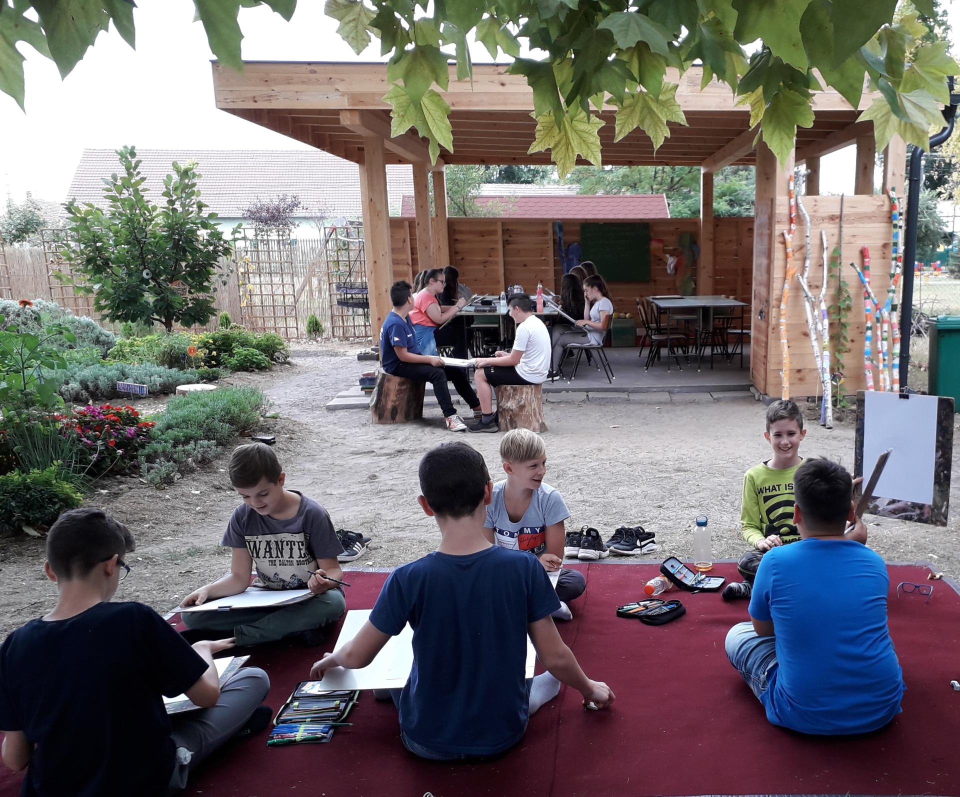 We can integrate it into all subjects: in Chemistry class we make vegetable ink, in Visual Culture class we use ink to paint a kite made in technology class. In Physics we learn about aerodynamics, in PE we fly the kite, in Social Class we develop self-awareness by articulating our fears and " dragons ", which we then release while flying. Members of the student enterprise make kites to sell, and we share the proceeds. In Literature class, we practice writing poetry about colours, expanding students' vocabulary while they can name shades of colour. The possibilities are endless... In addition, we involve a wide variety of professionals in the practical care of the garden: an agricultural specialist e.g. for composting, a forester for tree planting, a design engineer, a woodworker, a carpenter, a mason for building of a the tree house, a biochemist, a textile designer e.g. for ecoprinting, an economist for developing a student business, a mental health professional, a developmental educator for fostering peer relationships through trust games, a social worker when visiting a home for the elderly.We have a close professional relationship with the Kiskunság National Park and the arboretums in the area, from which we exchange plants and make reciprocal visits.