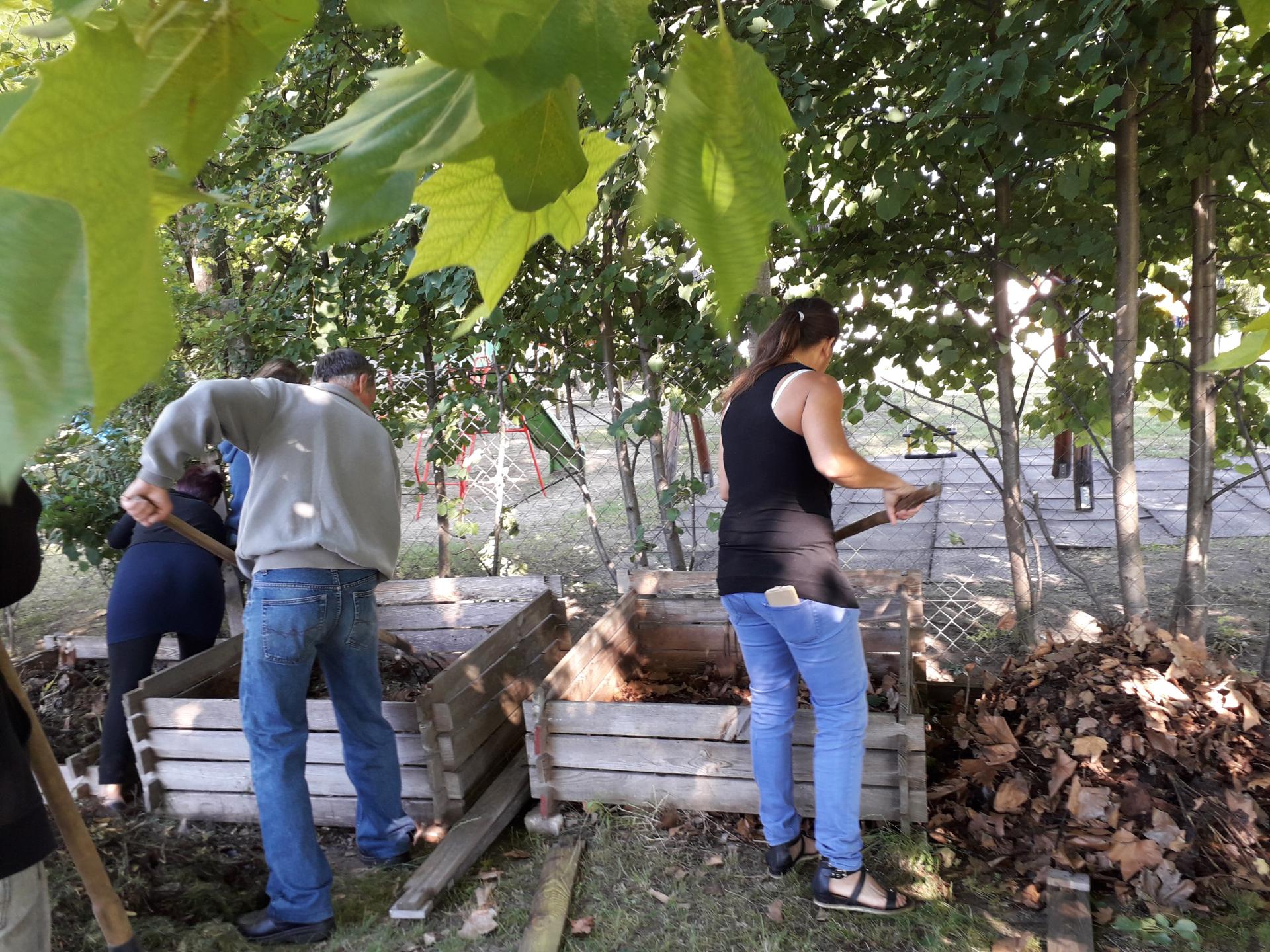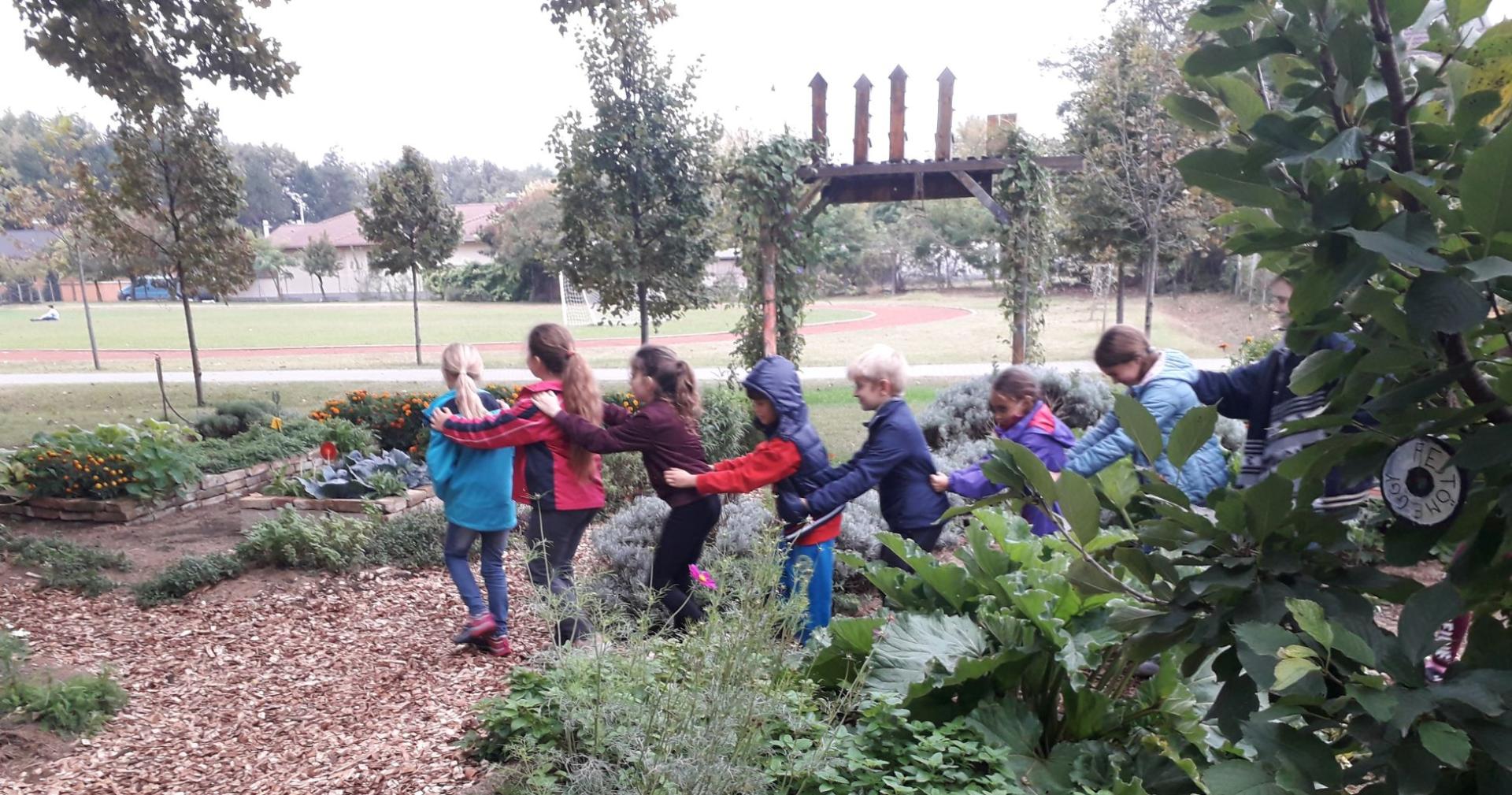 The garden is based on the principals of permaculture. In designing and maintaining our project, we put emphasis on a small budget: the added value by the locals and the participants is more prominent than the financial input. The materials used in the construction of the garden were not purchased, but collected from the families of the pupils and from local people and organizations. E.g. demolished bricks for the raised bed, materials for the ornamental gate, bird and insect feeders, nests for birds, insect shelters and seating. We sow own-collected and inherited seeds. The topsoil is created by self-composting. Mulching is used to protect the soil with green waste produced by the gardeners themselves or collected from the locals. We collect rainwater, since we live in a drought-prone area, it is important to retain water and irrigate professionally. Thanks to permaculture agriculture, biodiversity can be observed. Rare animals have appeared in our garden: Agile frog (rana dalmatina), praying mantis (mantis religiosa).