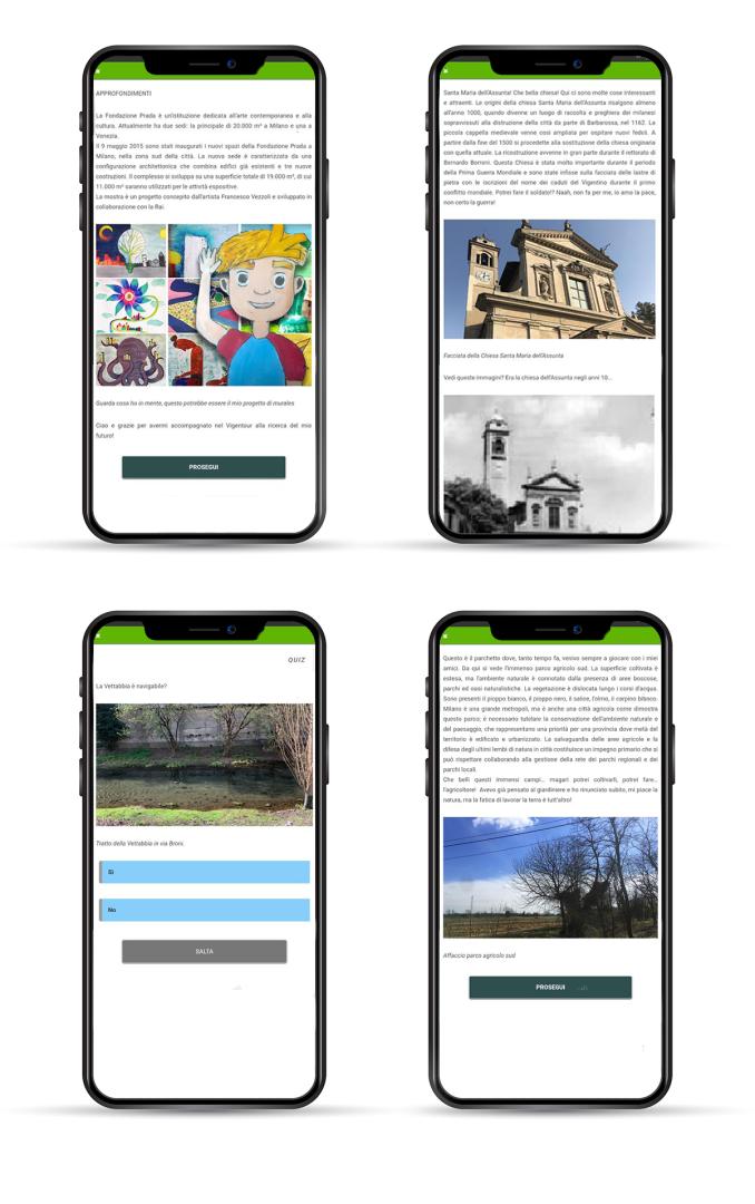 School teachers designed 37 different didactical paths, carrying out at least 20 different kinds of activities, of which about half involved the use of communication technologies applications (2 mobile tourist guides, 2 geogame applications, 1 Digital Atlas of Memories, and 1 virtual reality tour of the neighborhood) were co-created with teachers and students and are today available for free. Furthermore, students created 25 new collections for the digital museum of the Ecomuseo Milano Sud and over 30 between digital storytelling and map storytelling.