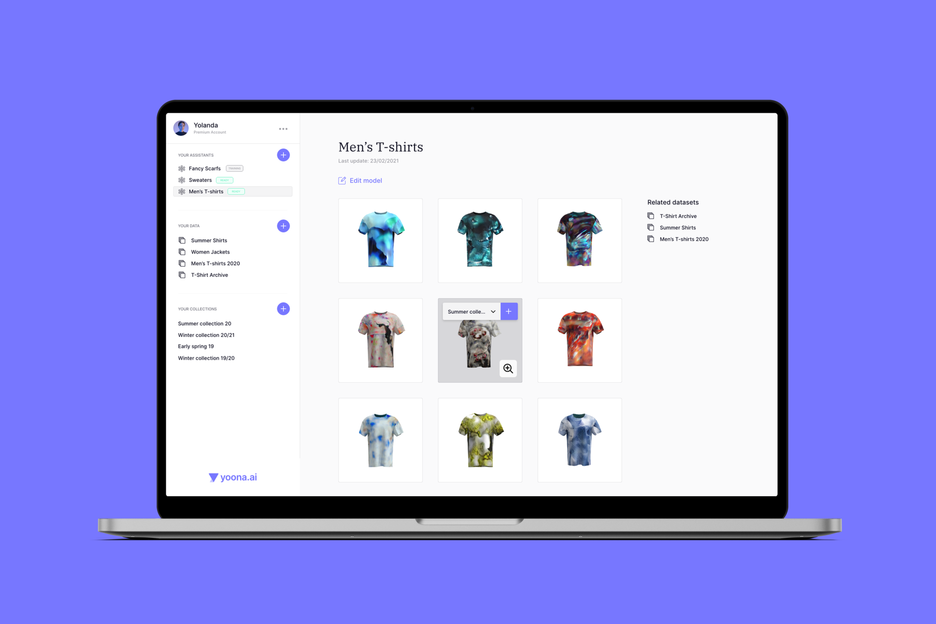 The entire yoona.ai team is young, dynamic, multi-national and agile. We come from the global design industry and all have a strong vision and passion to change it and to move towards digitalization and sustainability. Our fashion and tech professionals cumulatively possess 30 years of experience. We have all personally faced all the drawbacks of non-sustainable clothing development and production, and we know how time-consuming and inefficient the process of creating designs without data analytics can be. Thus, we accumulated all our knowledge and passion to create innovation that disrupts the value chain in the fashion industry. Besides the democratic and equal structures yoona.ai is based on, the usage of yoona.ai plattform meets the highest standards when it comes to universal design, accessibility and affordability. Every designer, company and design collaboration can access the platform with no complications from any part of the world. The dynamics of converting clients can be completely achieved online. Accompanied by our customer success manager any question, feedback or help requests can happen in the shortest time possible.