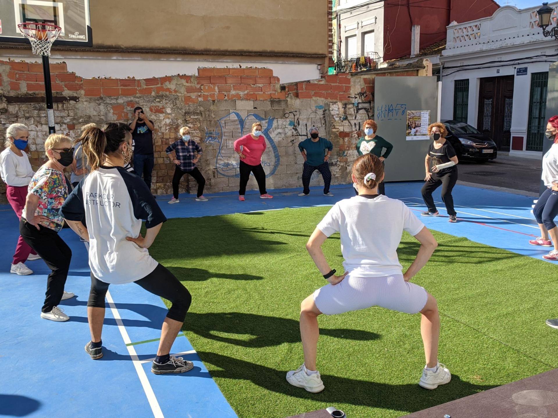 - Promoting physical and cultural activity in the neighbourhood, offering inclusive and healthy leisure opportunities for all ages. For example, the health centre in the area prescribes people over 60 to attend the free parkour activity for seniors offered in Zona Santiago every weekend since October 2021.